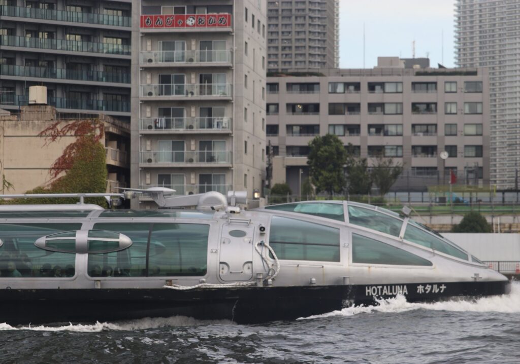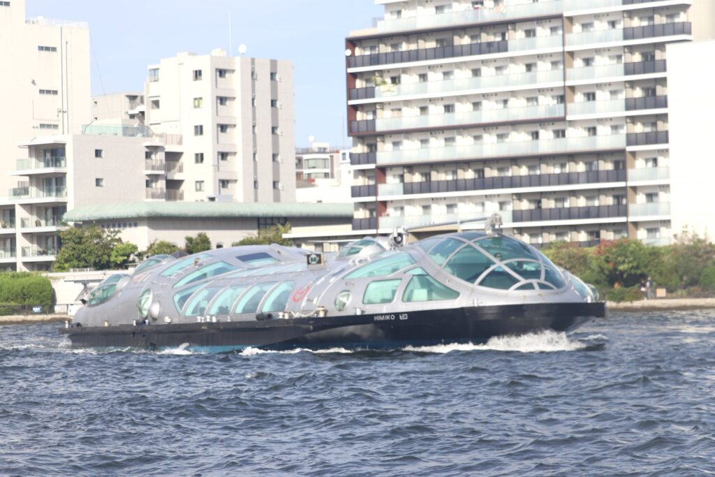 隅田川に出ると松本零士氏がデザインした船「ヒミコ」が颯爽と通り過ぎていきました。