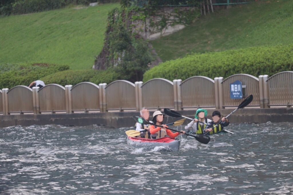 気を取り直して、豊海橋から隅田川に出ます。隅田川でカヌーを楽しんでいる人がいました。