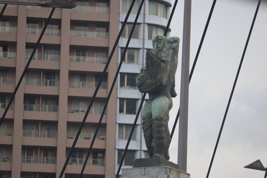 中央大橋のメッセンジャー像。これは望遠レンズがないと撮るの難しいです。
