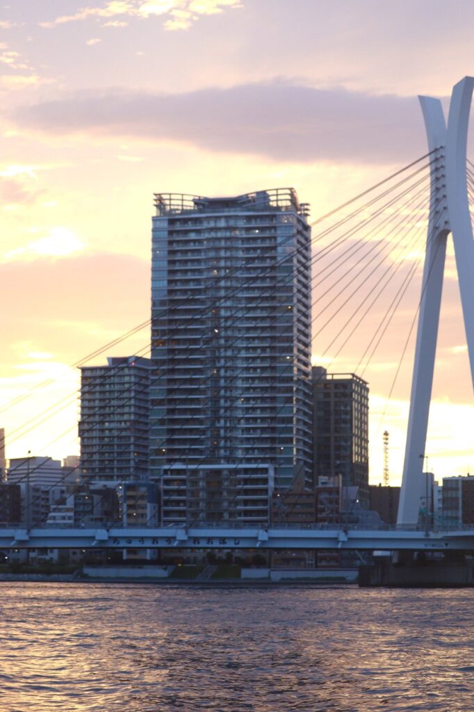夕暮れ時の中央大橋。