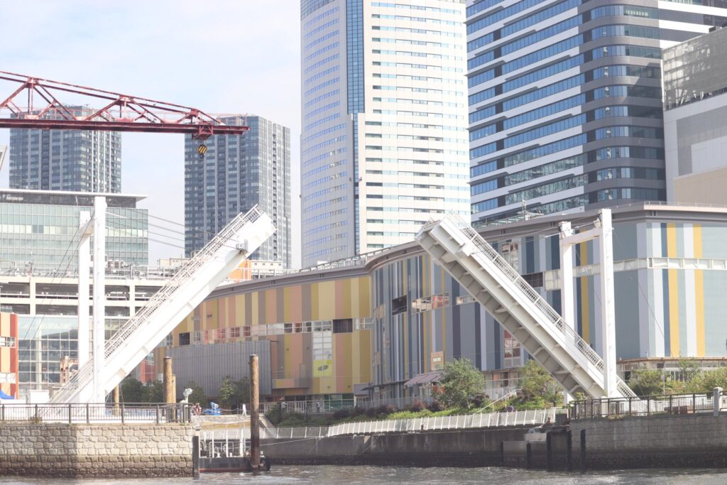 ららぽーと豊洲を晴海運河から見ます。